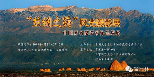 由中国风景名胜区协会摄影专业委员会主办,中国园林博物馆、北京国艺光影文化传播有限公司、雅昌文化集团共同承办的“丝绸之路风光摄影展——中国著名摄影家作品巡展”在中国园林博物馆已经展出一个月的时间,丰富多彩的摄影作品吸引着大量观众的参观。展览将于5月10日(本周日)结束,欢迎喜爱摄影和旅游的您前来参观。