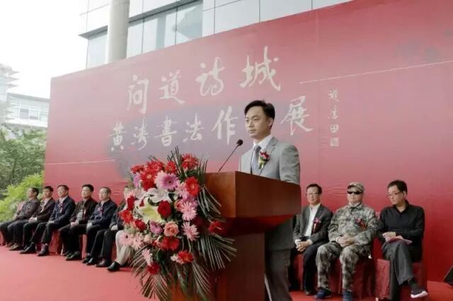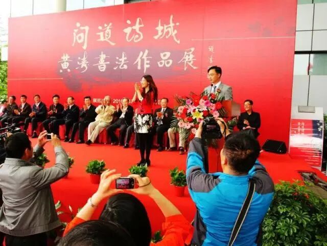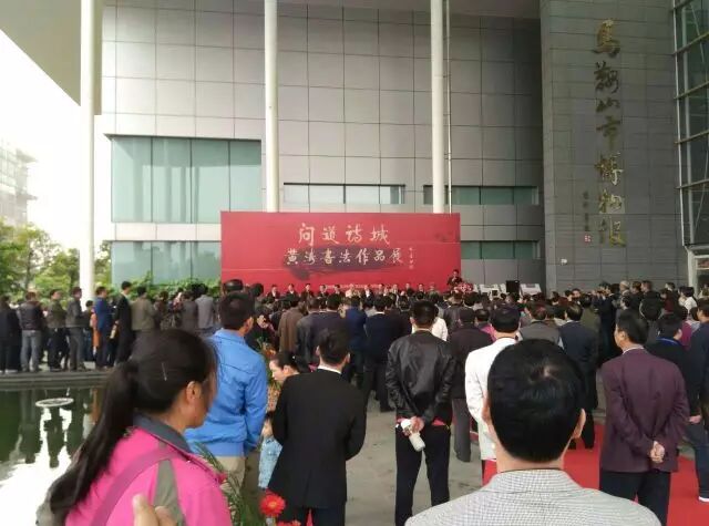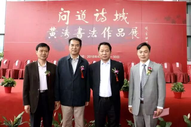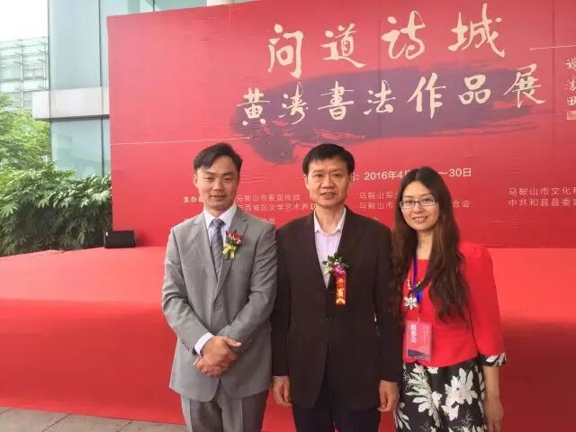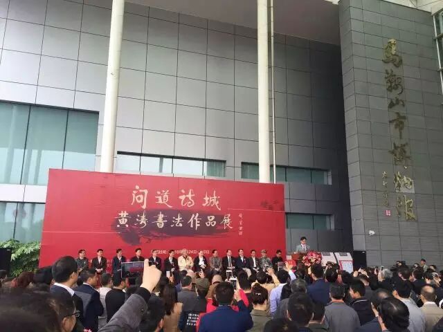 由中共马鞍山市委宣传部、马鞍山军分区政治部、北京市西城区文学艺术界联合会、马鞍山市文学艺术界联合会、马鞍山市文化和旅游委员会、中共和县县委宣传部联合主办,马鞍山市博物馆、马鞍山市书法家协会承办的《问道诗城——黄涛书法作品展》于2016年4月24日上午十点在马鞍山市博物馆隆重举办。著名表演艺术家杨在葆,原总参管理保障部政委宋方敏将军,原安徽省委常委、省军区司令员沈善文将军,原安徽省政协副主席郑牧民先生,原解放军南京工程兵学院政委孙之贵将军,原解放军报社副总编辑孙临平将军,中央军委机关事务管理总局北极寺老干部服务管理局政治部主任张黎先生,著名影视演员廖京生先生,首枚奥运金牌获得者、射击冠军许海峰先生,中央电视台著名主持人长啸先生,马鞍山市人大常委会主任靳林春先生,中共马鞍山市委常委、宣传部部长苏从勇先生,马鞍山市人大常委会副主任盛厚林先生,马鞍山军分区政治部主任顾振华先生出席了开幕式,长啸先生主持了开幕式。马鞍山市书画界同仁,市直机关、各区县有关领导同志及专程从北京、南京、上海、黄山、合肥、淮南、苏州、无锡、扬州等远道而来的朋友四百余人参加了开幕式。此次共展出黄涛先生近两年来创作的佳作160余件,是一次综合实力的展示,同时也是向家乡父老递交的一份满意答卷!